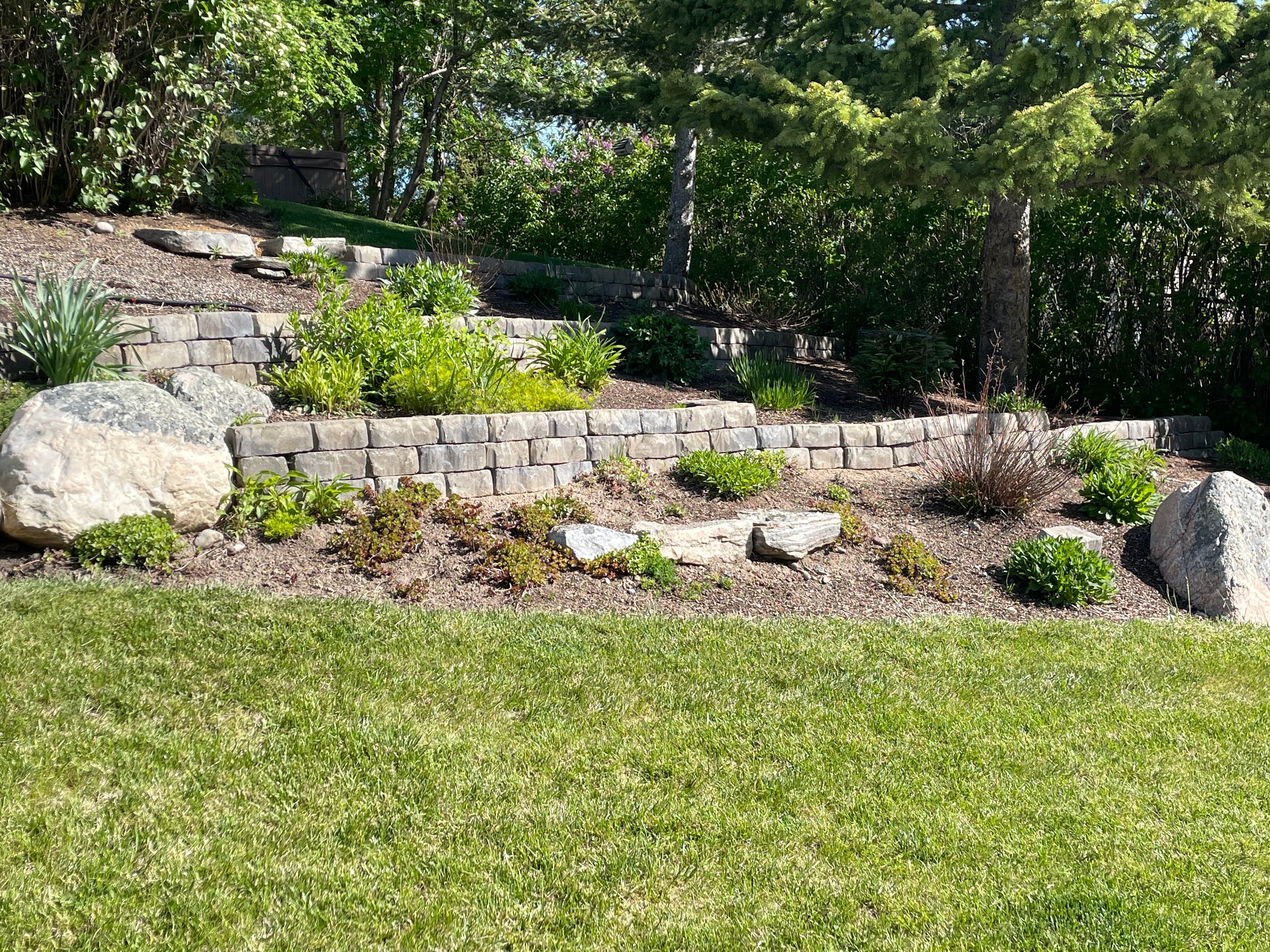 On steep grades, multiple shorter tiers outperform one tall wall by reducing load, creating planting shelves, and opening flat zones for play or patios. We set tier spacing for stability and maintenance access, route drainage between levels, and tie steps or paths through so the hillside works like a series of rooms. Terraces read intentional from the street and turn previously wasted slope into usable square footage you’ll enjoy every season.